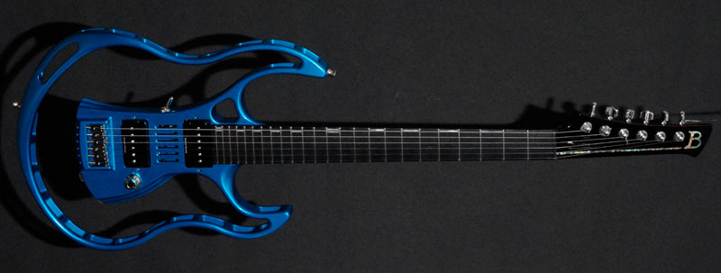 Maple Neck and Ebony Fingerboard with Turquoise Inlays in the Neck; EMG Dual – Mode Pickup with Active Tone Controls; Blue Anodized Finish